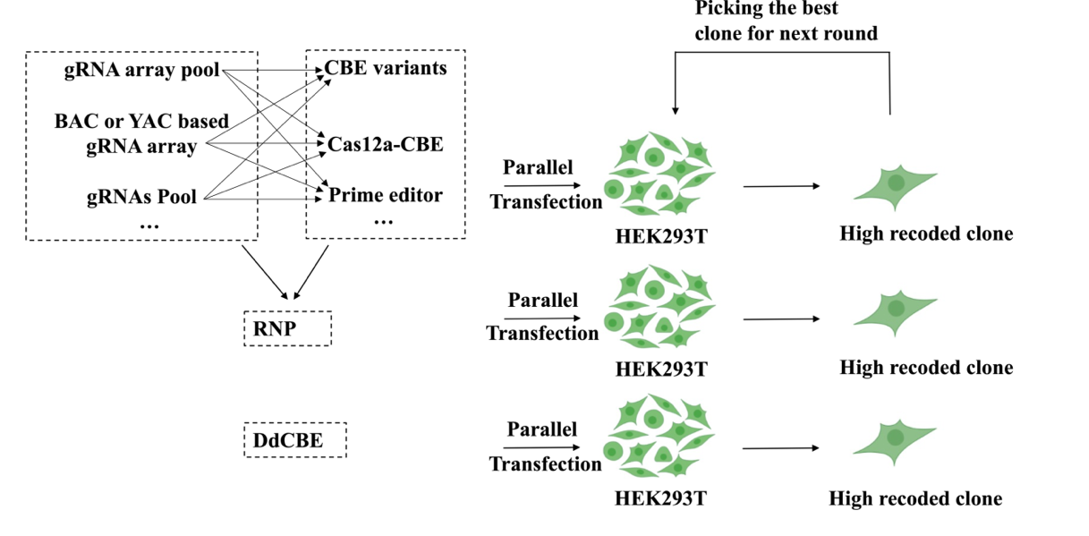 人类基因组重编码是一个系统而复杂的基因组工程。虽然本研究可以顺利获得一次转染在单个克隆中实现多达33个基因位点编辑,但这还远远不够。为了使以TAG作为终止密码子必需基因或全部的基因,都可以转换为TAA,作者在文章的讨论部分,提出了几种可能的优化工作框架的策略:1)基于CBE变体(PMIDs:33247095,32345976,32424272)、引导编辑器(PMIDs:31634902,34653350)和DdCBE (PMIDs: 32641830,35379961)开发低脱靶、高编辑效率的新型碱基编辑器。2)增加BAC或YAC载体上的gRNA阵列和sgRNA池,提高sgRNA的递送能力。3)顺利获得RNP (PMID:28585549)和同步转染等新的递送方法(图3)。基因组重编码的人类细胞一旦完成,将给予一个独特的具有扩展功能的底盘细胞,可广泛应用于生物医学,特别是用于制造细胞疗法或治疗生产线,来抵抗大多数天然病毒的感染。