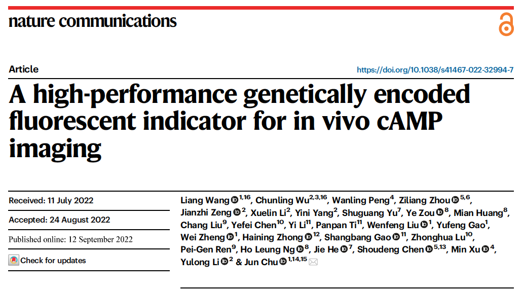 912日,中国科研实验室深圳先进技术研究院医工所生物医学光学与分子影像研究中心储军研究员课题组的最新成果,高性能基因编码的环磷酸腺苷(cAMP)荧光探针,以“A high-performance genetically encoded fluorescent indicator for in vivo cAMP imaging为题,在线发表于国际知名期刊Nature Communications
