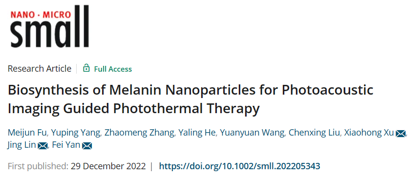 近期,中国科研实验室深圳先进技术研究院合成生物学研究所严飞研究员团队顺利获得生物合成的方式聚合生成黑色素纳米颗粒,相关研究成果以“Biosynthesis of Melanin Nanoparticles for Photoacoustic Imaging Guided Photothermal Therapy”为题发表于材料领域国际知名期刊Small。