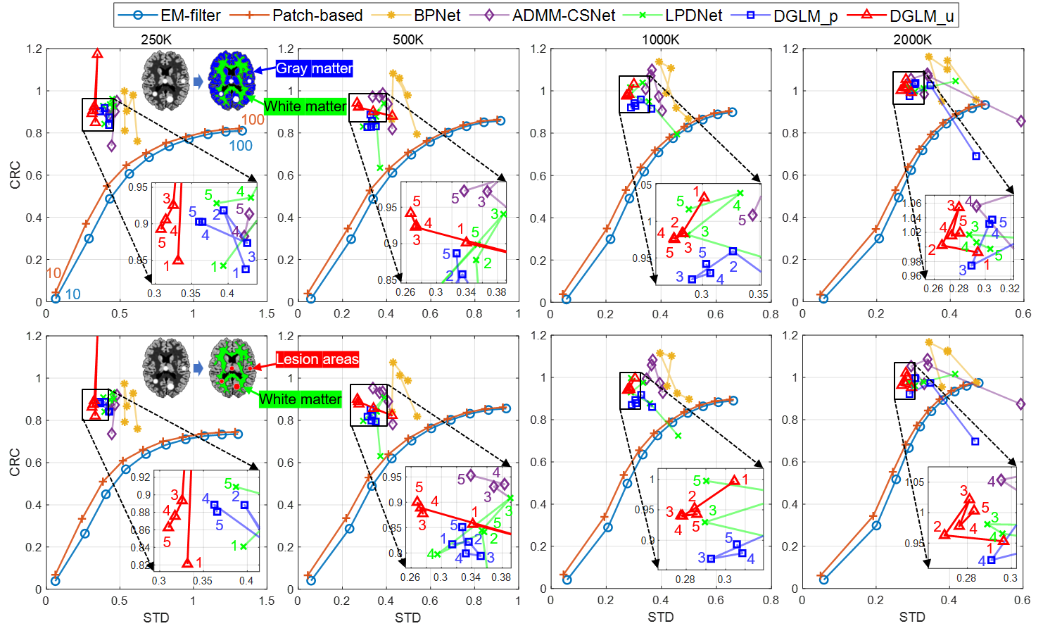 现有研究表明,儿童对于辐射剂量的敏感程度要远远高于成人,而且儿童在PET扫描时更容易由于运动导致重建图像出现伪影,因此低剂量快速PET成像在临床上具有重要意义。基于此,团队研发了一种基于深度学习的深度泛化PET重建模型(图1)。该模型顺利获得隐式学习来同时优化数据保真项和正则化项,能够显著改善由系统误差、随机散射和背景噪声等引起的原始信号畸变。实验结果表明,该模型在PET重建图像质量上明显优于现有深度学习和传统迭代方法(图2-图4)。