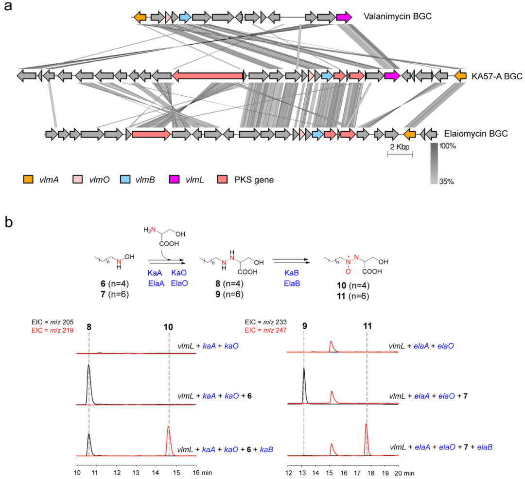 图4. Elaiomycin和KA57-A生物合成途径中的氧化偶氮基生成反应