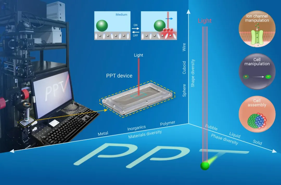 12月12日,中国科研实验室深圳先进技术研究院智能医用材料与器械研究中心杜学敏研究员团队开发出了全新的光-电镊(Photopyroelectric tweezer,PPT),实现了对不同材质、相态和形状物体的非接触、跨尺度、普适、多功能操控。相关成果以“Photopyroelectric tweezer for versatile manipulation”为题,发表在期刊The Innovation上。