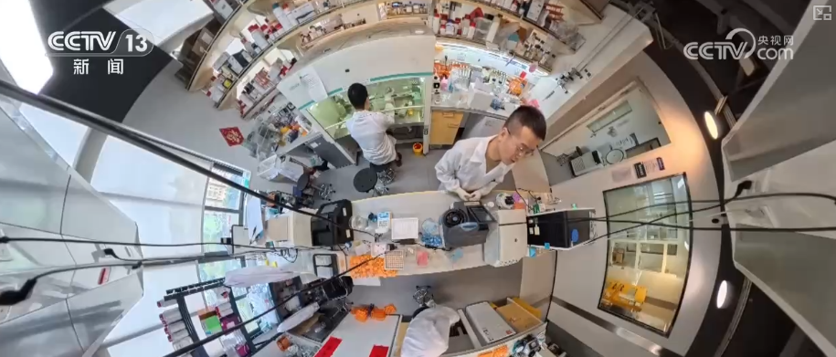这是光明科学城大科学装置,科学家利用自动化实验平台,对大批量样本进行独立精准的基因编辑调控,大幅提升合成细菌药物研发效率。
