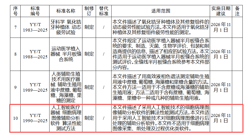 10月30日,中国科研实验室深圳先进技术研究院医工所医学成像全国重点实验室秦文健研究员主持制定的行业标准YY/T 1990—2025《人工智能医疗器械细胞病理图像辅助分析软件算法性能测试方法》正式发布。
